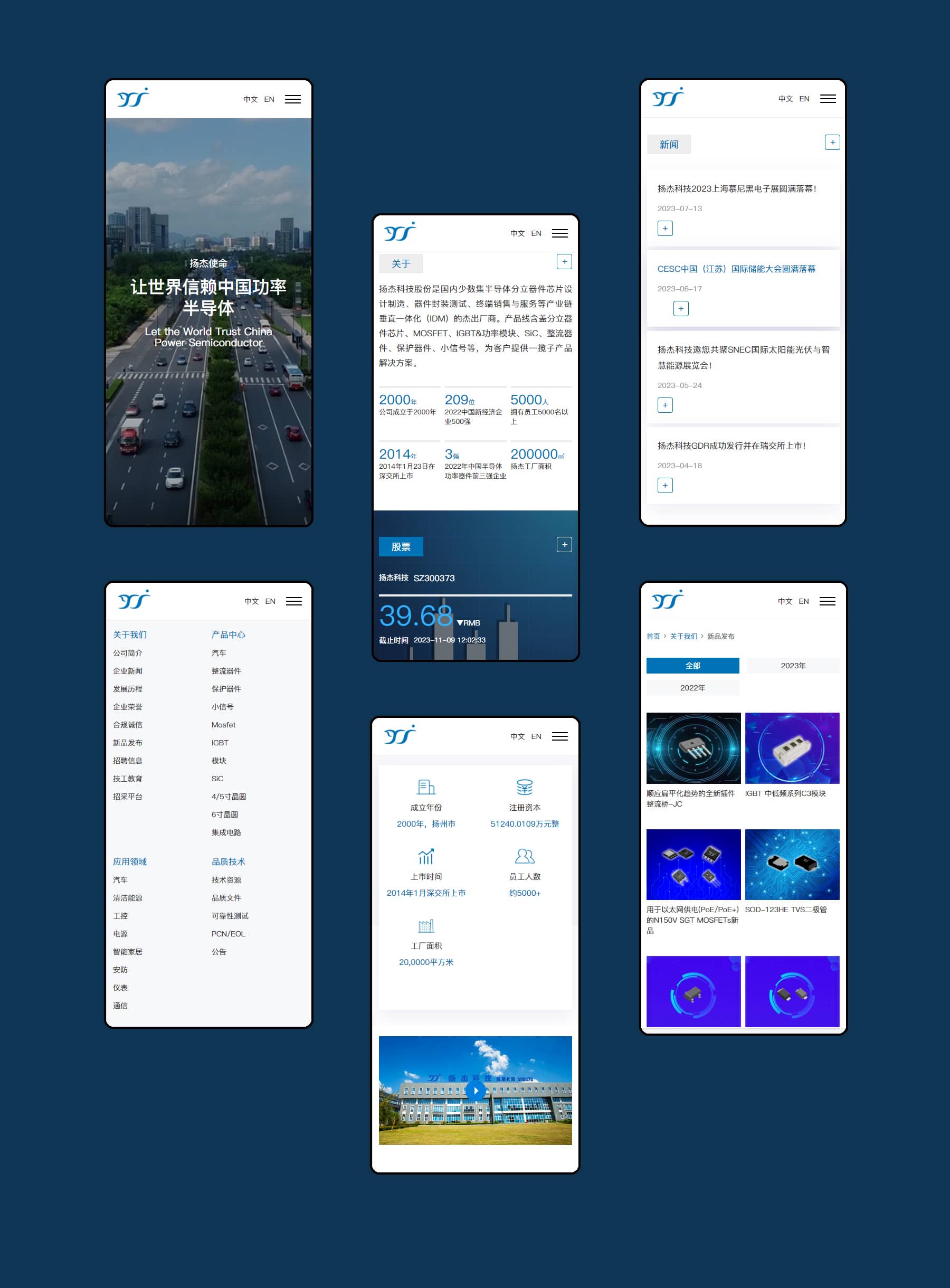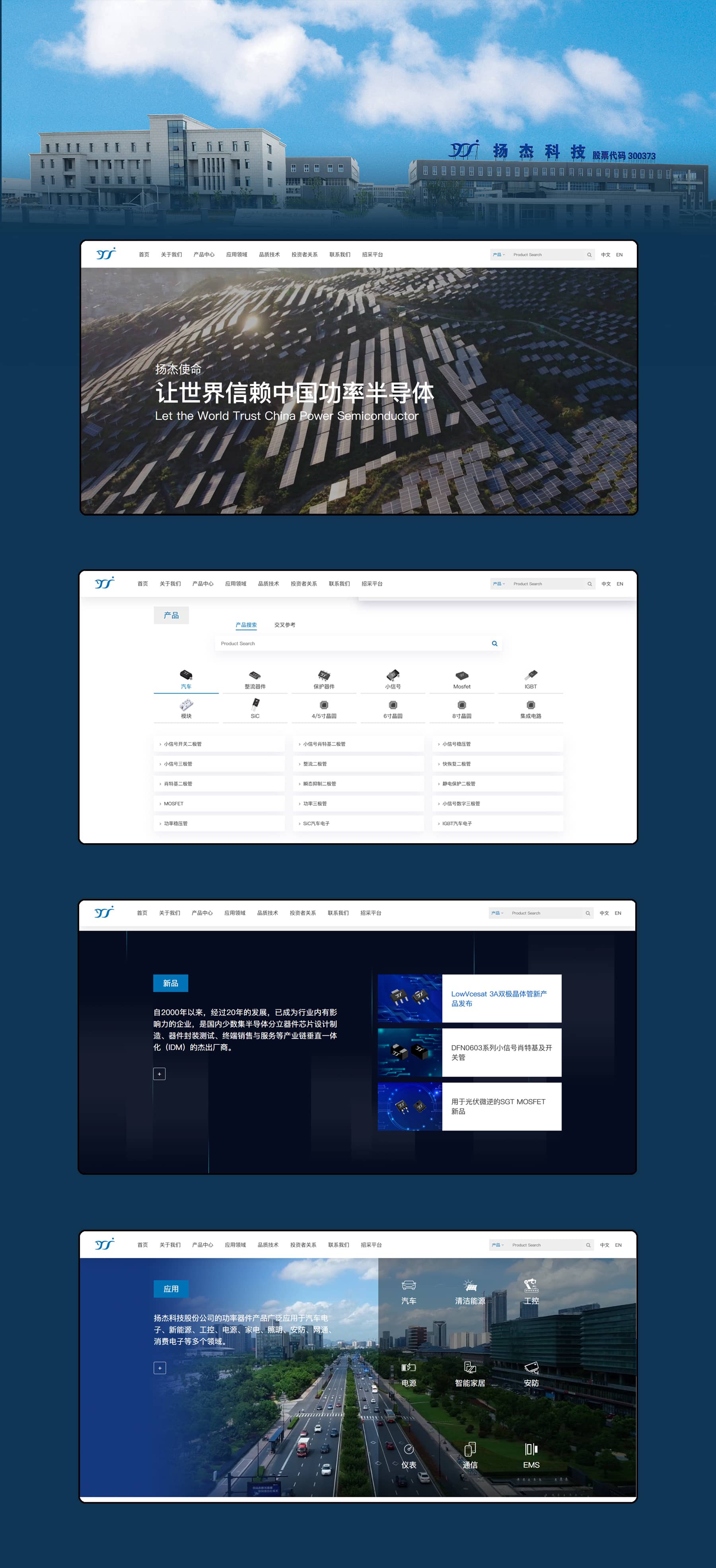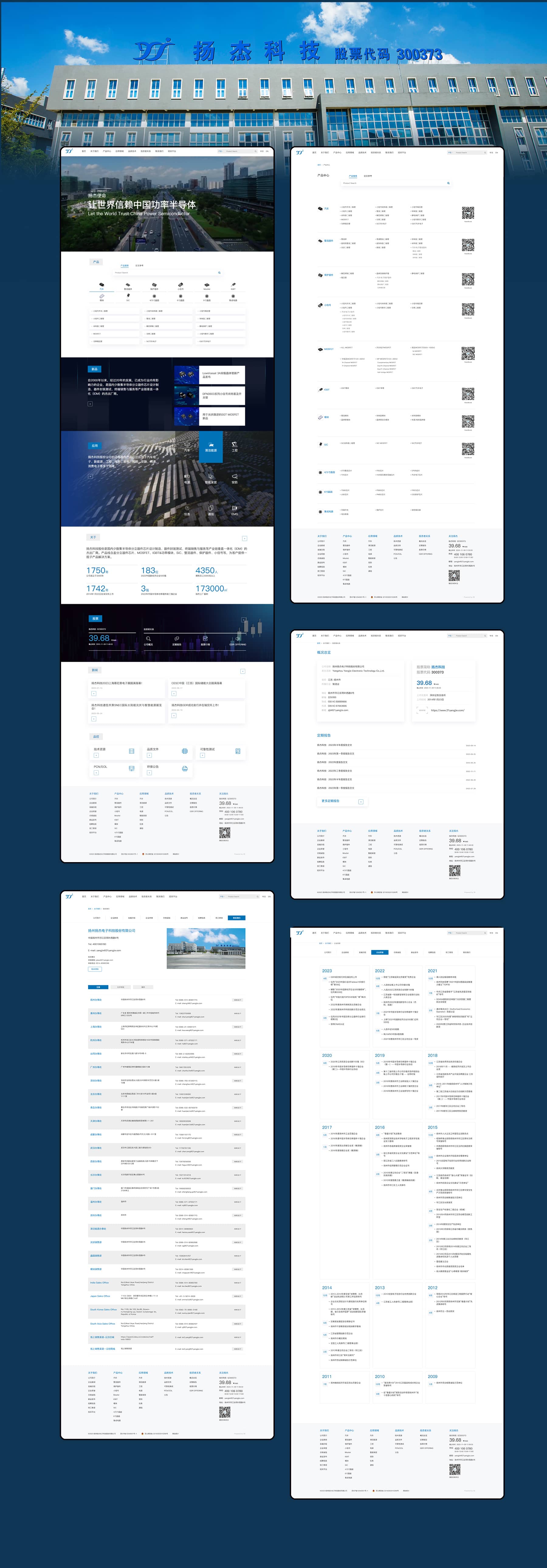 公司于2014年1月23日在深交所上市,證券代碼300373,相信在您的關懷支持下,我們一定能夠實現讓世界信賴中國功率半導體的愿景。上海松一與揚杰股份已經合作第3次,本來將會為揚杰公司打造全新的產品選型系統,官網建設項目成為業內新標桿。